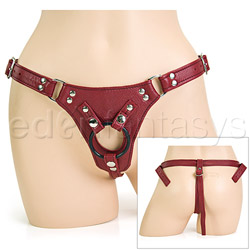 The O-ring is rather difficult … it has two snaps, at the top and bottom, so the ring itself is interchangeable, so you can use any size O-ring (and thus any size cock), but there is also a hole in the front panel behind the O-ring. So you can either put the cock through the panel AND the O-ring, or just put it through the O-ring. The hole in the panel is only 1 3/4″ (and thus not big enough for my favorite go-to cock, the Maverick by Vixskin), and if trying to get a rather big cock into the O-ring without putting it through the panel, it’s hard to get the snaps closed. It’s not really made to use with a cock that is outside of the back panel – but again, Maverick, the cock I use 95% of the time, is too big for the panel, so I this harness isn’t The Perfect Harness.