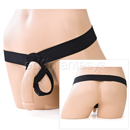 Oh, you do kind of have to use Silky in a harness. It wouldn’t really sit in your briefs comfortably, and it doesn’t fit in packing straps (usually packers are held in packing straps by their balls slipping into a little pouch). I recommend a really small harness like Bare as you Dare because it’s such small material under clothes. Many of the leather ones are hot and uncomfortable when wearing under slacks or jeans.