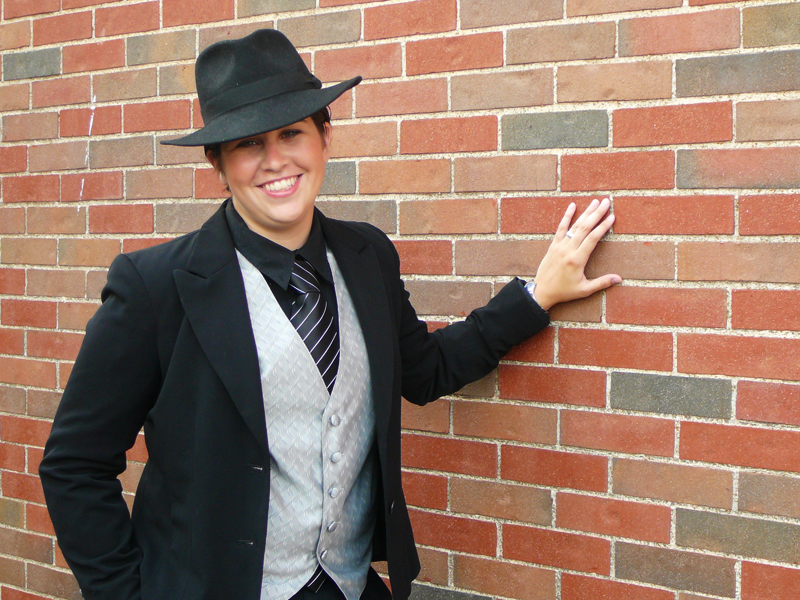What femme doesn’t positively swoon for a handsome butch in a [very dapper] suit doing the famous butch lean against a brick wall?
