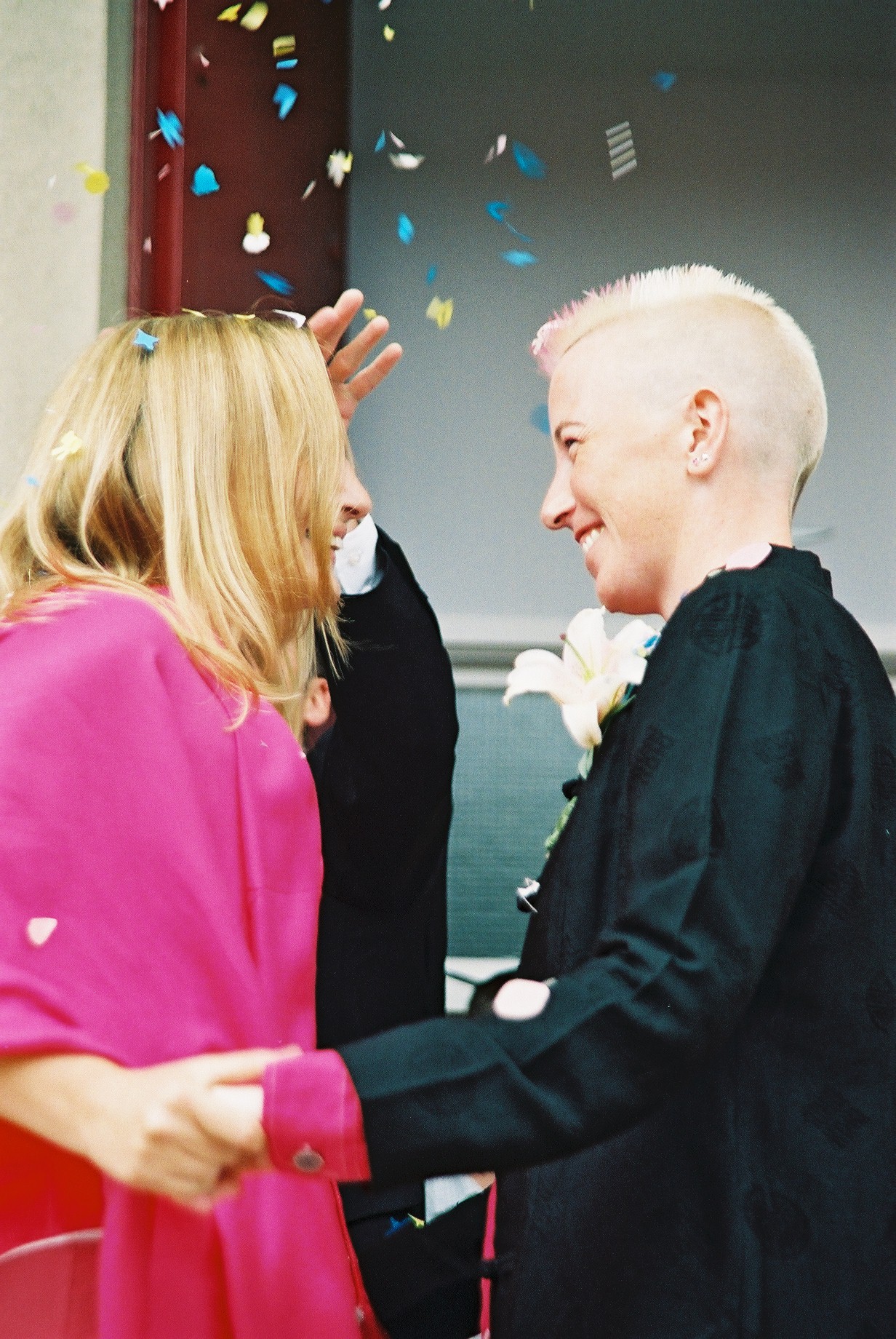 Says Femme: “It was August 21st 2004, and getting married? It was (and is) fucking fabulous! The best day EVER. We had a churchful of family and friends cheering us on which was incredibly special. The public statement was infinitely more important than either of us had realised it would be. We would (and will) do it again in a heartbeat. Of course, it would be wonderful to be able to do it legally.”
