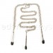 Tit Clamps by PipedreamThe Tit Clamps by Spartacus have a handsome thick chain and no black plastic caps on the end of the clamps, which makes them shiny and quite nice to look at. I thought they’d be too strong, but actually they’re quite nice. I like how they look and they’re quite comfortable.