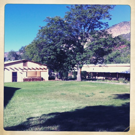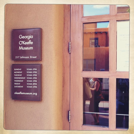 We did make it to the Georgia O’Keeffe museum, and it was beautiful. This small little adobe building, only a few rooms, but a beautiful gallery. The other two butches and I—who everyone started calling “the fellas”—were only there for about half an hour, but we got a good sense of what was there. (It’s an exhibit I’d already seen in New York at the Guggenheim, of O’Keeffe’s abstracts, which I’d listened to the whole audio tour and spent hours in the galleries, so I felt well acquainted with most of the pieces.) Still, it was really lovely to see the museum and to see her works surrounded by the colors of the New Mexico desert.