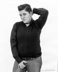 He came over yesterday to take some more shots of me, partly for my upcoming fall and spring 2012-2013 travel promotions, and he wanted to take some Avedon-inspired shots up on my roof against a white backdrop. These are the best of the best results, and I think they are amazing. There are a few more of me in front of my gender/queer bookshelves; those will be in the PDFs that go out to colleges next week.