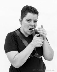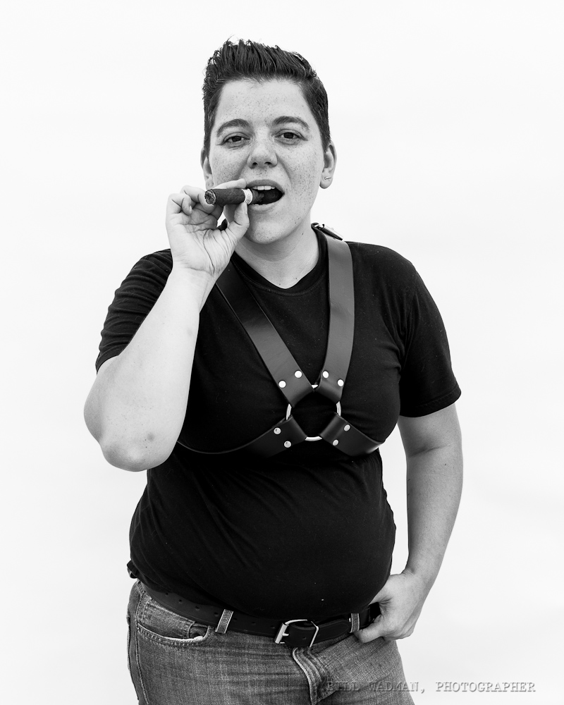 Photographer Bill Wadman has taken numerous shots of me in the last few years. Most recently and notably, he took the photo of me against the brick wall with the black and red flogger that I’ve been using as my avatar on most sites. He also took the shot of me shaving Kristen’s legs with a pink razor in the claw-foot bathtub with my sleeves rolled up.