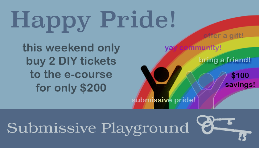So because I love community (in my introvert-misanthropic way), I want to invite you and a friend to sign up for the Submissive Playground—this weekend only!—for $200.