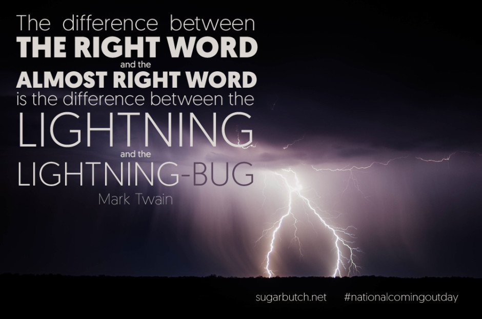 I’ll leave you of the Mark Twain quote: “The difference between the right word and the almost right word is the difference between the lightning and the lightning-bug.”