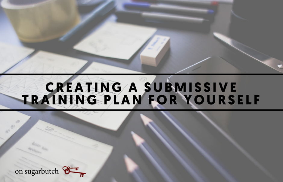 Even if you don’t currently have a dominant, you can create a training plan for yourself to keep you motivated, connected to your submissive, and striving. These are excellent skills to hone, both for yourself and for your future dominant.