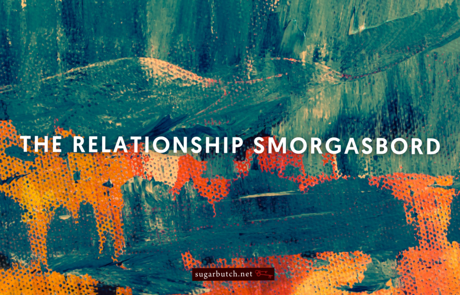 I mentioned the “relationship smorgasbord” to some friends recently, and they hadn’t heard of it. I thought it was more common than that! So I’m sharing it with you all here to encourage us to use this model more.