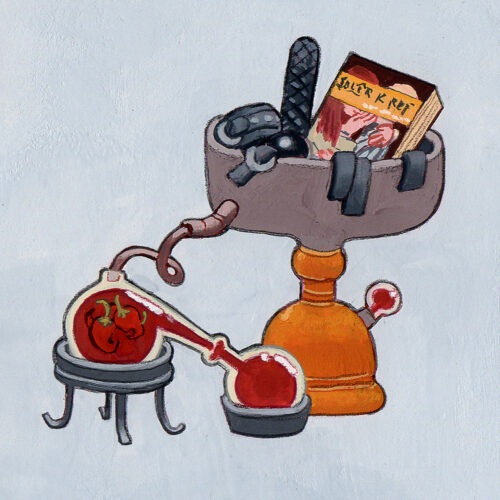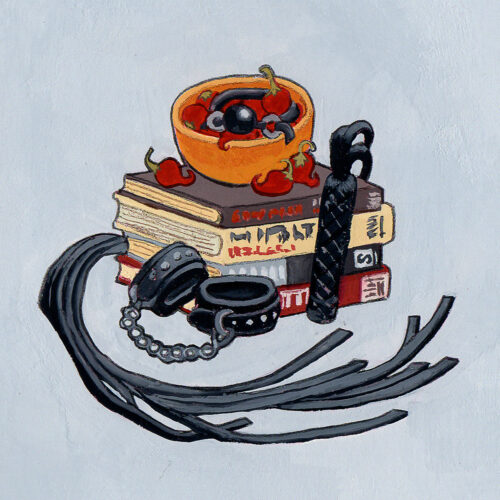 So this time around, I reached out to them to see if I could commission them to make something quite similar, but maybe with different things going into the blender, like kink toys, or books — still with the peppers, of course.