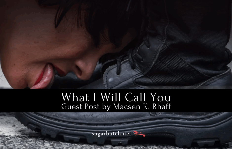Boy. That is what I will call you. When you’re on your knees. Mouth full. Spit slippery on silicone. Hands behind your back. Where I told you to keep them. Looking up at me, so I can see how much you want to please me.