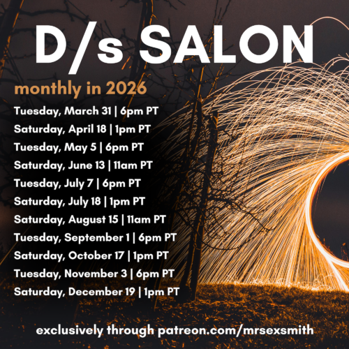 - D/s Salon: Tuesday, March 31 at 6pm PT