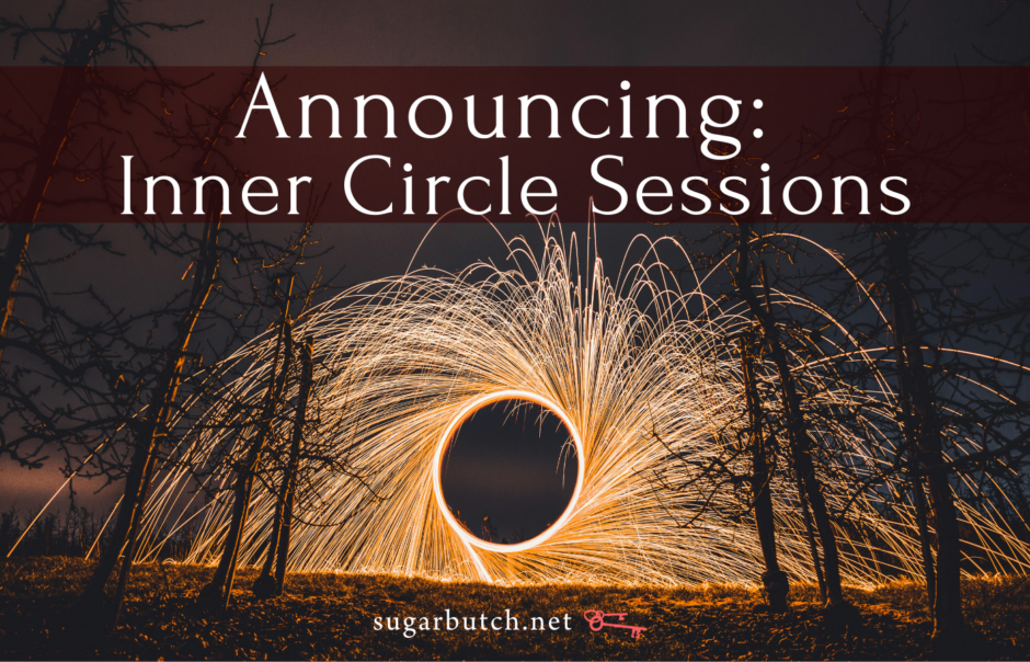 So this year I’m launching The Inner Circle Sessions, a Patreon-exclusive series of gatherings where we can talk about D/s, hype our smutty words, and support each other’s creative and kinky lives.