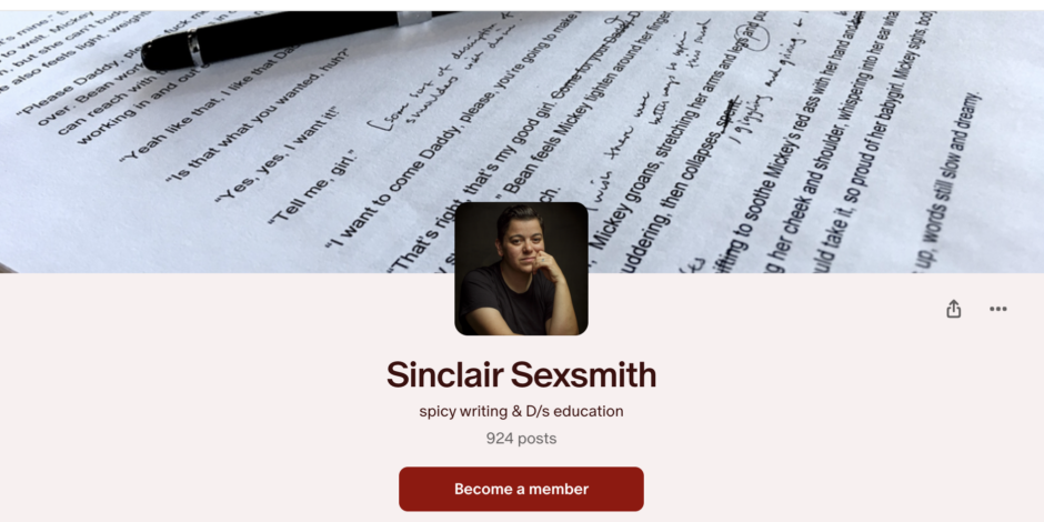 Patreon is also where I host my ongoing sessions for D/s folks and writers: the monthly D/s Salon, the Spicy Hype Session for writers, and quarterly deep-dive D/s workshops. If you want the password and a community to go with it, the webinar tier and above gets you all of that.