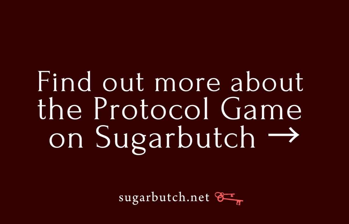 The Protocol Game Card Deck is 52 cards with different protocol for you to pull by yourself, with a D/s partner, or with friends. Use it however you want!