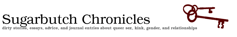 sugarbutch-header_small Posted on October 2, 2013 This site contains explicit writings on kink practices, dominant/submissive relationships, and queer kink erotica (among other things). All characters in role play or non-consent scenes are consenting adults. Content warnings are included. ← Previous ImageNext Image →